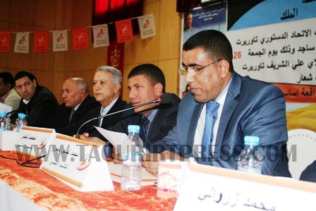 نظمت الكتابة الإقليمية لحزب الاتحاد الدستوري أمس الجمعة 2016/02/26 ابتداء من الساعة الثالثة زوالا يوما تواصليا بقاعة المركب السوسيو ثقافي مولاي علي الشريف بمدينة تاوريرت تحت شعار : ” الاتحاد الدستوري رافعة أساسية للتنمية “ وذلك بتنسيق مع مختلف تنظيمات الحزب ، حيث ترأس هذا اللقاء التواصلي الأمين العام لحزب الاتحاد الدستوري السيد محمد ساجد وحضره أعضاء المكتب السياسي للحزب وبرلمانيو الحزب ومستشاروه والمنتخبون و ممثلو المكاتب الوطنية والجهوية والإقليمية والمحلية للحزب و المنظمات الموازية و مناضلي ومناضلات الحزب بالإقليم والجهة ككل والى جانب فئات المجتمع المدني .