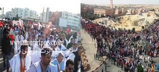 ورغم العدد الهائل الذي شارك من المواطنين المغاربة الصحراويين في مسيرة نداء الوطن بالعاصمة الرباط وعبروا بكل عفوية عن حبهم وتعلقهم المتين بالوطن وبالصحراء المغربية ، لم تشفي تلك المسيرة غليلهم ولم تطفئ عطش حبهم الوطني ، وليلحوا في تأكيدهم مرة أخرى على تشبثهم ببيعة الملوك العلويين و بمغربية الصحراء وبثوابت الأمة المغربية . لم يأبوا إلا أن نظموا يوم الثلاثاء بمدينة العيون مسيرة شعبية وتلقائية ثانية دعا إليها شيوخ وأعيان القبائل الصحراوية والمنتخبون المحليون والهيئات السياسية والنقابات وهيئات المجتمع المدني بالأقاليم الجنوبية شهدت مشاركة جموع غفيرة من المواطنين الصحراويين قدر عددهم بأزيد من 180 ألف شخص رجالا ونساء شيبا وشباب منطلقين من مركب الشيخ محمد الأغظف في اتجاه مقر بعثة “المينورسو” وهم يرفعون شعارات للتعبير و التنديد بالتصريحات المغلوطة لبان كي مون حول الصحراء المغربية .