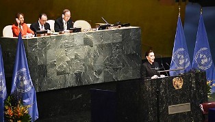 وجه صاحب الجلالة الملك محمد السادس، اليوم الجمعة، خطابا إلى حفل توقيع اتفاق باريس حول التغيرات المناخية بمقر الأمم المتحدة، تلته صاحبة السمو الملكي الأميرة للا حسناء .