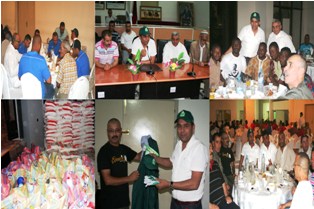 بعد ذلك قام السيد الرئيس بتوزيع زي العمل الجديد الحامل لعلامة المجلس الجماعي بالإضافة إلى أكياس دقيق وقفة تحتوي على كل مستلزمات رمضان وقد بلغ عدد المستفيدين من هذه العملية 60 عاملا .