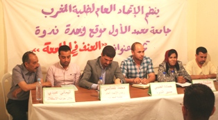 نظم الاتحاد العام لطلبة المغرب جامعة محمد الأول موقع وجدة ندوة تحت عنوان ” العنف في الجامعة ” ، وذلك يوم 20 / 06 / 2016 بمقر حزب الاستقلال حضره حوالي 30 شخص .