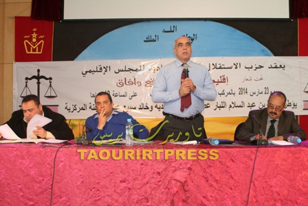 شهدت القاعة الكبرى بالمركب الاجتماعي مولاي علي الشريف بتاوريرت صبيحة اليوم الأحد 23 مارس 2014 حوالي الساعة العاشرة انعقاد الدورة العادية للمجلس الإقليمي لحزب الاستقلال والتي نظمها تحت شعار ” إقليم تاوريرت ، واقع وأفاق ” أطرها كل من السيد عبد السلام اللبار عضو اللجنة التنفيذية لحزب الاستقلال وخالد السبيع الممثل البرلماني لإقليم تاوريرت وعضو اللجنة المركزية لحزب الاستقلال . عرفت الدورة حضورا مميزا لمنخرطي وأعضاء الحزب وفئات من المجتمع المدني إلى جانب الصحافة المحلية والتي كانت تاوريرت بريس حاضرة ضمنها .