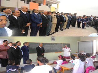 وكان السيد الوالي مرفوقا بوفد يضم كل من الكاتب العام لولاية جهة الشرق و السيد محمد ديب مدير الأكاديمية الجهوية للتربية والتكوين لجهة الشرق، والسيد محمد زروقي المدير الاقليمي بالمديرية الاقليمية وجدة انجاد ، و وفد يمثل مختلف المصالح الخارجية المدنية والعسكرية وممثلي قطاع التعليم بالجهة ، وبعض فعاليات المجتمع المدني بمدينة وجدة. وبعد تحية العلم من خلال النشيد الوطني الذي ردده تلاميذ وتلميذات المؤسسة، قدم السيد المدير الإقليمي الشروحات اللازمة المتعلقة بالدخول المدرسي والمعززة بالمؤشرات والأرقام والبيانات وإحصائيات حول سير العملية التربوية بالإقليم وكذا معطيات حول مدرسة حمان الفطواكي.