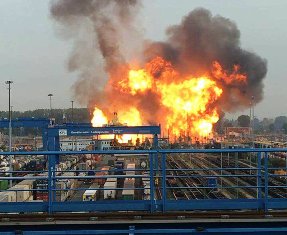 ونصحت مدينة لودفيجسهافن السكان في المنطقة المحيطة بتفاديالخروج وإبقاء نوافذهم وأبوابهم مغلقة. وقالت شركة باسف إن موقع لودفيجسهافن يقع على بعد 80 كيلومترا تقريبا جنوب فرانكفورت وهو أكبر مجمع للكيماويات في العالم ويغطي منطقة تصل إلى عشرة كيلومترات مربعة ويعمل به 39 ألف عامل.