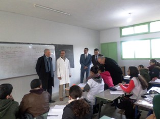 وقدمت للسيد الوزير والسيد والي جهة الشرق عامل عمالة وجدة أنجاد- شروحات اضافية من طرف السيد محمد ديب مدير أكاديمية جهة الشرق حول وضعية المسالك الدولية للبكالوريا المغربية، والبكالوريا المهنية بجهة الشرق حيث أشار السيد محمد ديب إلى أن عدد المؤسسات المحتضنة للمسالك الدولية بالجهة هو 22 مؤسسة يتمدرس بها 2587 تلميذ وتلميذة، ويبلغ مجموع الأقسام 88 قسما، أما عدد التلاميذ بالثانية باكالوريا مسالك دولية فيبلغ 464 تلميذا وتلميذة يتمدرسون في 19 قسما في حين يبلغ عدد المؤسسات الخصوصية المحتضنة لهاته المسالك 7 مؤسسات يتمدرس بها 336 تلميذا وتلميذة وبالنسبة للتلاميذ المسجلين بالجذع المهني الصناعي بالباكالوريا المهنية فيبلغ 342 تلميذا وتلميذة، ونجد نفس العدد بالنسبة التلاميذ الذين يتمدرسون بالجذع المهني الخدماتي أما بالنسبة لسنة أولى باكالوريا مهنية فبلغ عدد المسجلين 136 تلميذا وتلميذة. بعد ذلك قام السيد الوزير والوفد المرافق له بمعاينة قسمين بالمؤسسة المذكورة، قسم خاص بالمسالك الدولية للبكالوريا المغربية وقسم خاص بالجذع المهني الخدماتي، حيث تحدث مطولا مع تلامذة القسمين مستفسرا إياهم عن الأسباب والحوافز التي جعلتهم يختارون هاته المسالك مما حفز التلاميذ على التواصل معه بطلاقة في حديث ودي جعلت السيد الوزير يعجب بنباهة عينة من التلاميذ وبمستواهم الدراسي معربا عن ارتياحه لمسار هذين المسلكين بأكاديمية جهة الشرق.