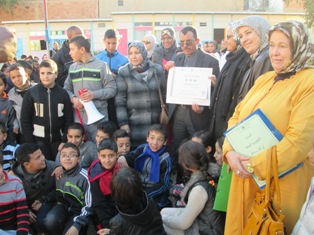 – ويعد مناقشة العروض والمداخلات توجه الحضور لزيارة مدرسة الزلاقة حيث قدمت السيدة ممثلة مؤسسة محمد السادس لحماية البيئة شهادة فضية للسيد مدير المؤسسة لما بذله من جهود رفقة الطاقم الإداري والتربوي والتلاميذ في تدبير استهلاك الماء و تدبير النفايات.
