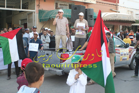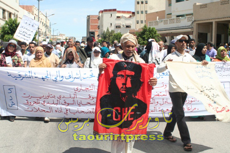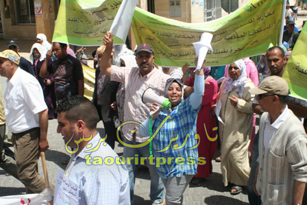وكما كان مبرمجا لتنظيم هذا الاحتفال تحت شعار ” وحدويون معبؤون لتحقيق المطالب العادلة للطبقة العاملة ومواجهة كل التحديات ” . فقد افتتح التجمع الخطابي بكلمة مقتضبة عدد فيها المتحدث الرسمي باسم نقابة الكونفدرالية الديموقراطية للشغل مشاكل وهموم ساكنة تاوريرت موظفين ومعطلين ، عمال وفلاحين ، تجار وحرفيين ، سلاليين ومأجورين …. ليعطي انطلاقة المسيرة الحاشدة التي جابت أهم أرجاء المدينة و شوارعها الرئيسية في تنظيم محكم انطلاقا من أمام مقر البلدية ومرورا بالسوق المحروق ثم مصلحة الماء الصالح للشرب و المستشفى الاقليمي بتاوريرت والسوق المغطى بالحي القديم و المحكمة الابتدائية بتاوريرت وانتهاء أمام نيابة وزارة التربية الوطنية بتاوريرت . حيث رفع المشاركون خلال هذه المسيرة مجموعة من الشعارات التي عبروا فيها عن تطلعاتهم وانشغالاتهم مطالبين بالحق في الصحة والتعليم والتشغيل والزيادة في الأجور وتسجيل العمال بالضمان الاجتماعي وصون الحريات النقابية كما أكدوا على ضرورة محاربة الفساد من اجل تحقيق العدالة الاجتماعية المنشودة بالمدينة .