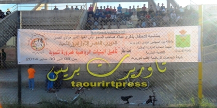 شهد الملعب البلدي بإقليم تاوريرت ، بعد زوال يوم 05 مايو 2014 بداية من الساعة الخامسة عصرا افتتاح منافسات الدوري الذهبي الأول لفرق الأحياء في كرة القدم المصغرة والذي ينظم من طرف شبكة الجمعيات الرياضية بإقليم تاوريرت وبشراكة مع المجلس البلدي واللجنة المحلية للمبادرة الوطنية للتنمية البشرية بمناسبة الاحتفال بذكرى ميلاد صاحب السمو الملكي ولي العهد الأمير مولاي الحسن . وذلك تحت شعار “ تأهيل البنيات الرياضية ، ضرورة تنموية ” . يشارك في هذا الدوري عدد مهم من الفرق ( 52 فريق ) موزعة على المقاطعات بالمدينة ( المقاطعة الأولى والثانية والثالثة و الرابعة ) .وقد تم تخصيص أربع ملاعب رياضية لتنظيم هذا الحدث الرياضي المهم إلى جانب طاقم مكون من الحكام واللجان الساهرة على التنظيم .