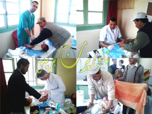عملية الختان مرت في ظروف جد حسنة سهر على تنظيمها لجنة مكونة من الجمعيتين واشرف عليها فريق صحي من إقليم تاويرت تجندوا لإنجاح هذا اليوم الخيري وفي يوم عطلتهم مكون من: