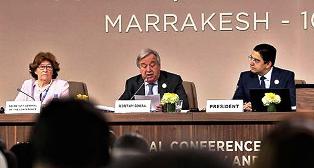 أكد الأمين العام للأمم المتحدة أنطونيو غوتيريش، الإثنين 10 دجنبر بمراكش، أن الميثاق العالمي من أجل هجرة آمنة، ومنظمة ومنتظمة يتبع نهجا سيمكن من مساعدة ليس فقط المهاجرين والمهاجرات، ولكن أيضا المجتمعات الأصلية ومجتمعات الاستقبال.