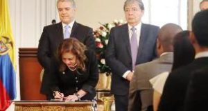 وذكر موقع وزارة الشؤون الخارجية أن الديبلوماسية أدت القسم الثلاثاء أمام رئيس الجمهورية، إيفان دوكي، خلال حفل نظم بكاسا دي نارينيو (مقر الإقامة الرسمي لرئيس الجمهورية ومقر الحكومة الكولومبية)، بحضور رئيس الديبلوماسية الكولومبية، كارلوس هولميس تروخيو.