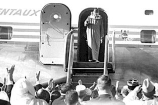 وفور عودته رفقة الأسرة الملكية، يوم 18 نونبر 1955 من المنفى إلى أرض الوطن، أعلن الملك الراحل عن انتهاء نظام الوصاية والحماية الفرنسية وبزوغ فجر الحرية والاستقلال، مجسدا بذلك الانتقال من معركة الجهاد الأصغر إلى معركة الجهاد الأكبر وانتصار ثورة الملك والشعب.