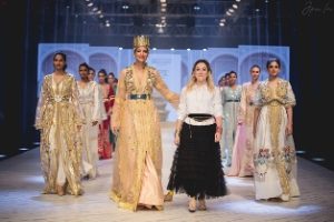 كما قدمت المصممة المبدعة أحدث تشكيلة لها من القفاطين العصرية حملت عنوان “ANJUM” في مزج فريد بين التصاميم المغربية الأمازيغية، مستخدمة أحدث صيحات الموضة من قبيل أحزمة البلاستيك التي تساعد على انعكاس الألوان، وخليط من الابتكارات التي أبهرت الحضور، كالورود بطريقة 3D، وتقديم أثواب المخمل، مستخدمة الطريقة الهندية في المزج بين الألوان وبين الحرفية المغربية في الطرز وخدمة المعلم.