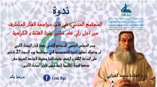 بعد تصاعد وثيرة انتشار الفكر المتطرف في مجموعة من الدول العربية أو ما بات يعرف اختصارا ب “داعش”، اختار المجلس الجهوي للمجتمع المدني بجهة الدار البيضاء الكبرى بصفته جامعا لعدد كبير من الجمعيات الفاعلة بالجهة التدخل لإدماج الجمعيات في قلب تنوير و توعية و تحسيس الرأي العام لمواجهة أي تسويق للأفكار المتطرفة التي تسعى إلى زرع الفتنة و الكراهية في صفوف المواطنين خاصة الشباب منهم، و قد اختاروا تنظيم ندوة ينشطها العديد من المتدخلين على رأسهم الفقيه و العلامة محمد الفيزازي المعروف بتوجهه السلفي المعتدل و الذي أثار ما من مرة ضجة كبيرة بتصريحاته الشجاعة بعد أن راجع مواقفه الفقهية و كذلك بعد أن أدى جلالة الملك صلاة الجمعة وراءه بمسجد طارق ابن زياد بطنجة.