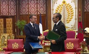 وقع صاحب الجلالة الملك محمد السادس، نصره الله، مرفوقا بصاحب السمو الملكي ولي العهد الأمير مولاي الحسن، وصاحب السمو الملكي الأمير مولاي رشيد، وفخامة السيد إيمانويل ماكرون، رئيس الجمهورية الفرنسية، اليوم الاثنين، بالديوان الملكي بالرباط، الإعلان المتعلق بالشراكة الاستثنائية الوطيدة بين المملكة المغربية والجمهورية الفرنسية،