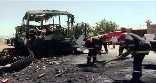 وأفادت السلطات المحلية بالمدينة أن الحريق الذي شب بالحافلة حوالي الساعة الثانية صباح اليوم الثلاثاء على مستوى الطريق الوطنية رقم 8 بالنقطة الكيلومترية 800+632 الرابطة بين آزرو وخنيفرة في اتجاه بني ملال لم يخلف ضحايا حيث تفطن السائق إلى وجود عطب تقني في الحافلة فأوقفها قصد التحقق من مصدره وطلب من الركاب النزول منها لتندلع النيران مباشرة بعد ذلك في الحافلة.