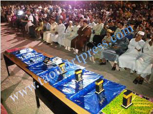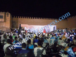 بمناسبة شهر رمضان الأبرك، واحتفاء بكتاب الله تعالى وخدامه المخلصين الصادقين من أهل العلم وأهل القرآن، زينت جمعية اقرأ للثقافة والتنمية رحاب أجواء رمضان الكريم، مساء أمس الجمعة 16 رمضان 1436، 03 يوليوز 2015، بفضاء القصبة الواقع وسط مدينة العيون سيدي ملوك، بأمسية قرآنية رمضانية إيمانية، حضرها جمع غفير من بنات وأبناء المدينة من مختلف الفئات والأعمار الذين رابطوا بالفضاء إلى آخر لحظة من عمر الأمسية ينصتون في خشوع وتدبر لتلاوة آيات محكمات من الذكر الحكيم، أبدع في أدائها نخبة من القراء من خيرة خطباء وأئمة وقراء مدينتي العيون ووجدة، ممن اصطفاهم الله لخدمة كتابه، وحباهم بأصوات حسنة تصدح بآياته، مما يدل على تشبث أبناء هذه البلدة الطيبة المباركة بكتاب الله العظيم، واعتزازهم بأهله.
