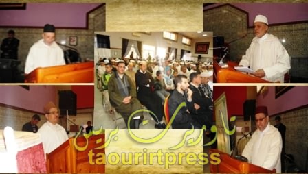 في إطار أنشطته الثقافية والعلمية واحتفاء بذكرى مولد خير البشرية سيد الخلق سيدنا محمد صلى الله عليه وسلم. نظم المجلس العلمي المحلي إقليم بركان يومه الأحد 22 ربيع الثاني 1435 الموافق 23 فبراير 2014 بقاعة الرابحي للحفلات، نشاطا ثقافيا خاصا بالمولد النبوي الشريف للموسم الثالث، تم فيه تكريم عدد من الحافظين والحافظات لكتاب الله تعالى من الطلبة والطالبات، كما تم تكريم بعض المحفظين القدماء من بينهم الفقيه امحمد ابراهيمي محفظ بمركز ورطاس بركان، كما تم توزيع جوائز قيمة على الفائزين في مسابقة السيرة النبوية الشريفة والحديث النبوي الشريف، وقد حضر الحفل عدد من الشخصيات العلمية الوازنة يتقدمهم فضيلة العلامة الدكتور مصطفى بنحمزة ورؤساء المجالس العلمية للجهة الشرقية والدكتور سمير بودينار رئيس مركز الدراسات والبحوث اﻻنسانية واﻻجتماعية بوجدة، والمندوب اﻻقيلمي للشؤون اﻻسلامية ببركان والعلماء والوعاظ والفقهاء والخطباء وطلبة العلم، وقد غصت قاعة الرابحي الكائنة بحي الصديق شارع محمد الخامس طريق وجدة ببركان، بالحضور من كل اﻷطياف والشرائح المجتمعية، كما تم تكريم فضيلة اﻷستاذ كمال الدين رحموني رجل المدينة والعنصر الثقافي والمحرك اﻻجتماعي بها، من لدن العلامة الدكتور مصطفى بنحمزة بعمرة الى بيت الله الحرام. كما تخلل الحفل كلمات لكل من فضيلة الدكتور محمد حباني رئيس المجلس العلمي ﻻقليم بركان واﻻستاذ محمد كحودي عضو المجلس رئيس لجنة القرءان الكريم والحديث النبوي الشريف والسيرة النبوية بالمجلس العلمي، واﻻستاذ لحسن غميط المندوب اﻻقليمي للشؤون اﻻسلامية ببركان وكلمة لفضيلة العلامة الدكتور مصطفى بنحمزة، كما ختم الحفل بوصلات من المديح والسماع من اداء مجموعة الرسالة برئاسة اﻻستاذ محمد فالشو ثم دعاء الختم للاستاذ الرشيد اﻻسماعيلي عضو المجلس العلمي لبركان، لينتقل بعد ذلك الحضور الى وجبة غذاء التي أقيمت على شرفهم.