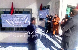 أمام مقر وكالة المحافظة على الأملاك العقارية . نظم صباح اليوم الخميس 19/11/2015 مستخدمو هذه الإدارة وقفة احتجاجية مطالبين بمجموعة من المطالب متعلقة بتحسين أوضاعهم المادية والإدارية .