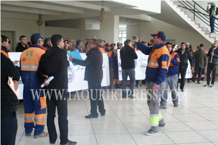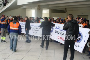 شهد بهو بلدية تاوريرت صباح اليوم 14/12/2015 تنظيم وقفة احتجاجية لنقابة عمال شركة النظافة (c.m.e.r) المنضوية تحت لواء الاتحاد المغربي للشغل . رفعوا خلالها شعارات المطالبة بتسوية وضعيتهم المادية وتمتيعهم بحقوقهم المخولة لهم .