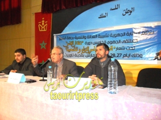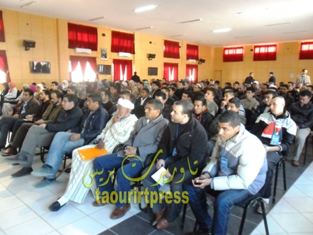 نظمت الكتابة الجهوية لشبيبة العدالة والتنمية بجهة الشرق اليوم 28 فبراير 2014 حوالي الساعة الرابعة مساءا بقاعة المركب الاجتماعي بتاوريرت الملتقى الجهوي الخامس ” دورة علال الفاسي “ تحت شعار “العمل السياسي التزام وتضحية ” والدي تم افتتاحه في جلسة عمومية ليوم الخميس 27 فبراير2014 بنفس القاعة أطره كل من السيد محمد العثماني و نور الدين بركاني . حيث تناول السيد العثماني في كلمته التذكير بسيرورة الحزب التاريخية وأهدافه الإصلاحية كما قدم حصيلة أولية للعمل الحكومي وأنهى كلمته بتوجيه الشباب وحثه على ضرورة معرفة المبادئ الأساسية التي يشتغل عليها الحزب واستحضارها مؤكدا أن الحكومة تبدل كل ما في وسعها من اجل تحقيق تطلعات المواطن .أما السيد بركاني فقد لخص ما قاله السيد العثماني قبله في سؤالين أجاب عنهما :